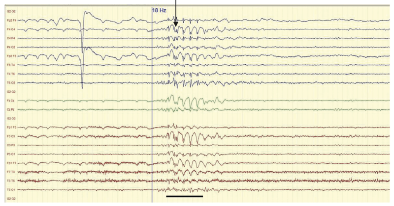 Brève bouffée de polypointes-ondes généralisées synchrones.