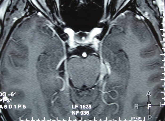 Les résultats de l’IRM cérébrale et de l’angioscanner des troncs supra aortiques vous sont présentés ci dessous.